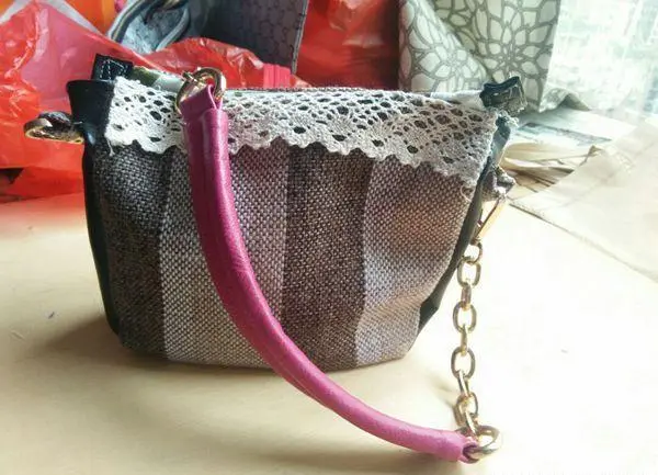 This handmade bags is made by simply cutting and sewing. Finally, install the lace decoration, add handles, and of course hang a small fabric toy, and you can load up your things and go shopping!