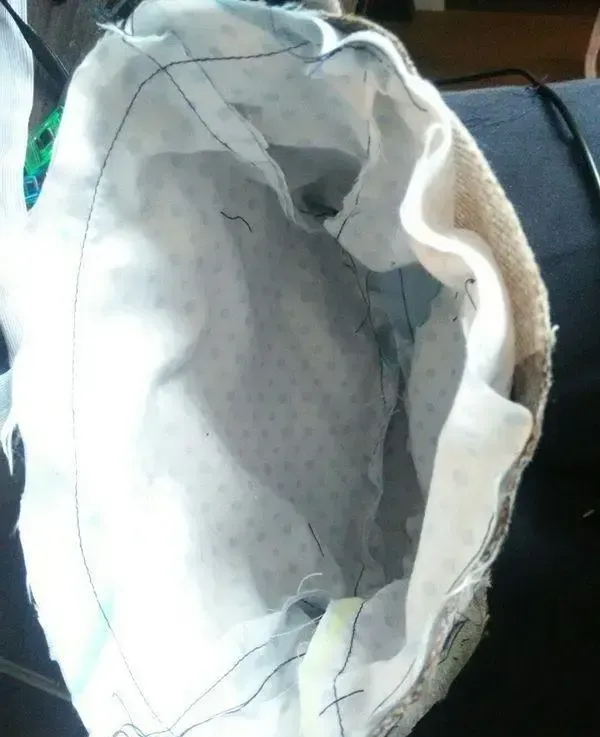 5. The lining fabric is sewn together as well as the outer fabric.