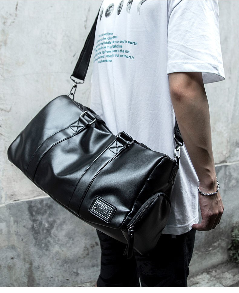Black leather crossbody bag men's Tote Travel Cylinder training Fitness bag Large capacity luggage shoulder bag: