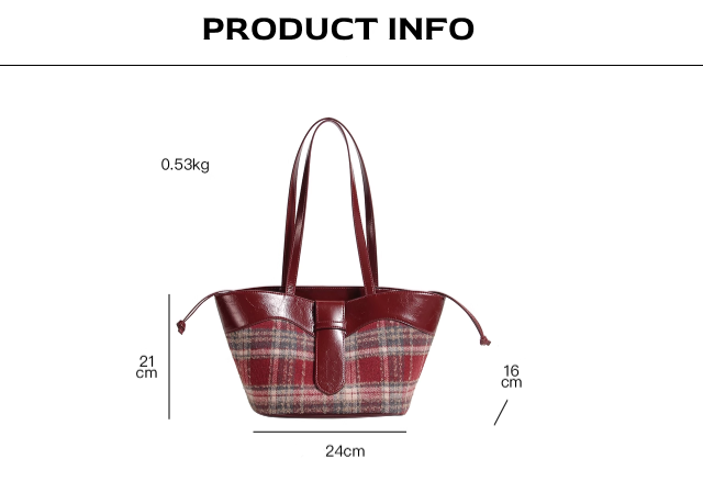 Elevate your style with our Cherry Red Plaid Handbag. Crafted with exquisite detail and a red leather strap, this large capacity shoulder bag impeccably complements any ensemble. Its retro appeal, unique design, and refined finish make it a standout accessory for all seasons. Embrace sophistication and make a statement with this distinctive piece.